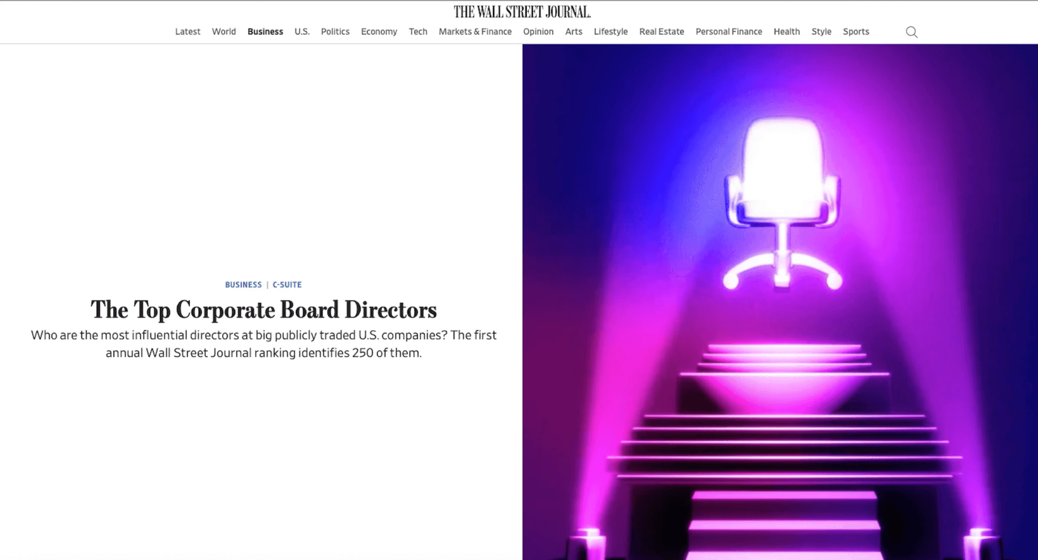 In May, The Wall Street Journal published its Top Board Directors ranking, which was created by Bendable Labs. The ranking, which highlighted the 250 most influential and effective corporate directors on an S&P 500 board, was developed for the Wall Street Journal Leadership Institute. The institute aims to help business leaders navigate an ever-changing landscape. And it does so with an orientation that is very much aligned with Bendable Labs—that is, how “in today's world, human capital, not physical capital, is the principal source of corporate value . . . how a sense of purpose beyond profits can inspire people to do their very best work,” as the institute’s president, Alan Murray, has put it.